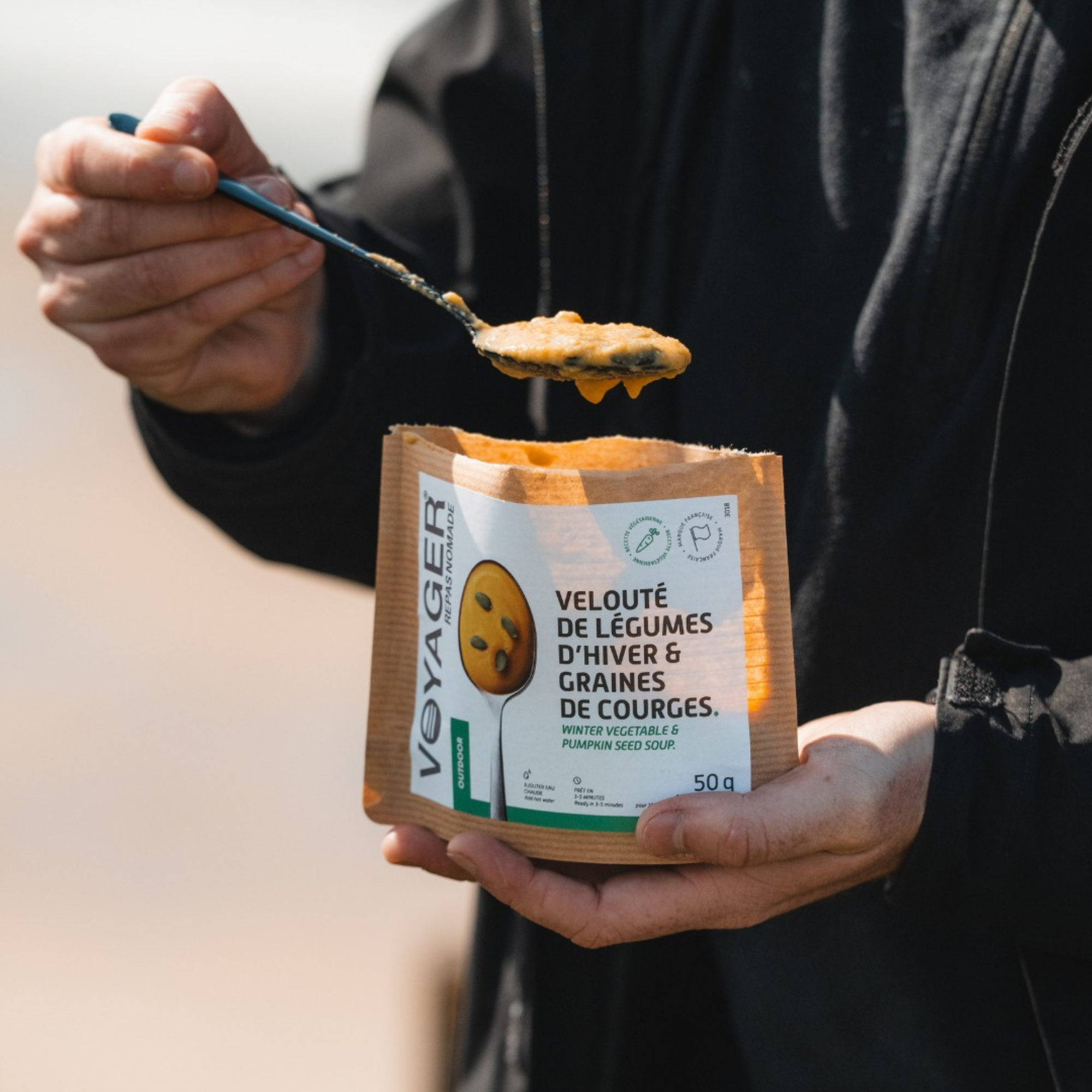 Le groupe NutriDry est engagé depuis leurs origines en 1930 et plus récemment dans le lancement de la marque outdoor, à limiter drastiquement leurs impacts négatifs en réduisant leurs émissions de gaz à effet de serre (GES) et en réduisant les déchets issus de leurs activités. Ils mettent une priorité à développer une politique de sourcing responsable tout en lançant une démarche pro active de développement d’emballages recyclables.Note éco-responsable de VOYAGER au baromètre Muule