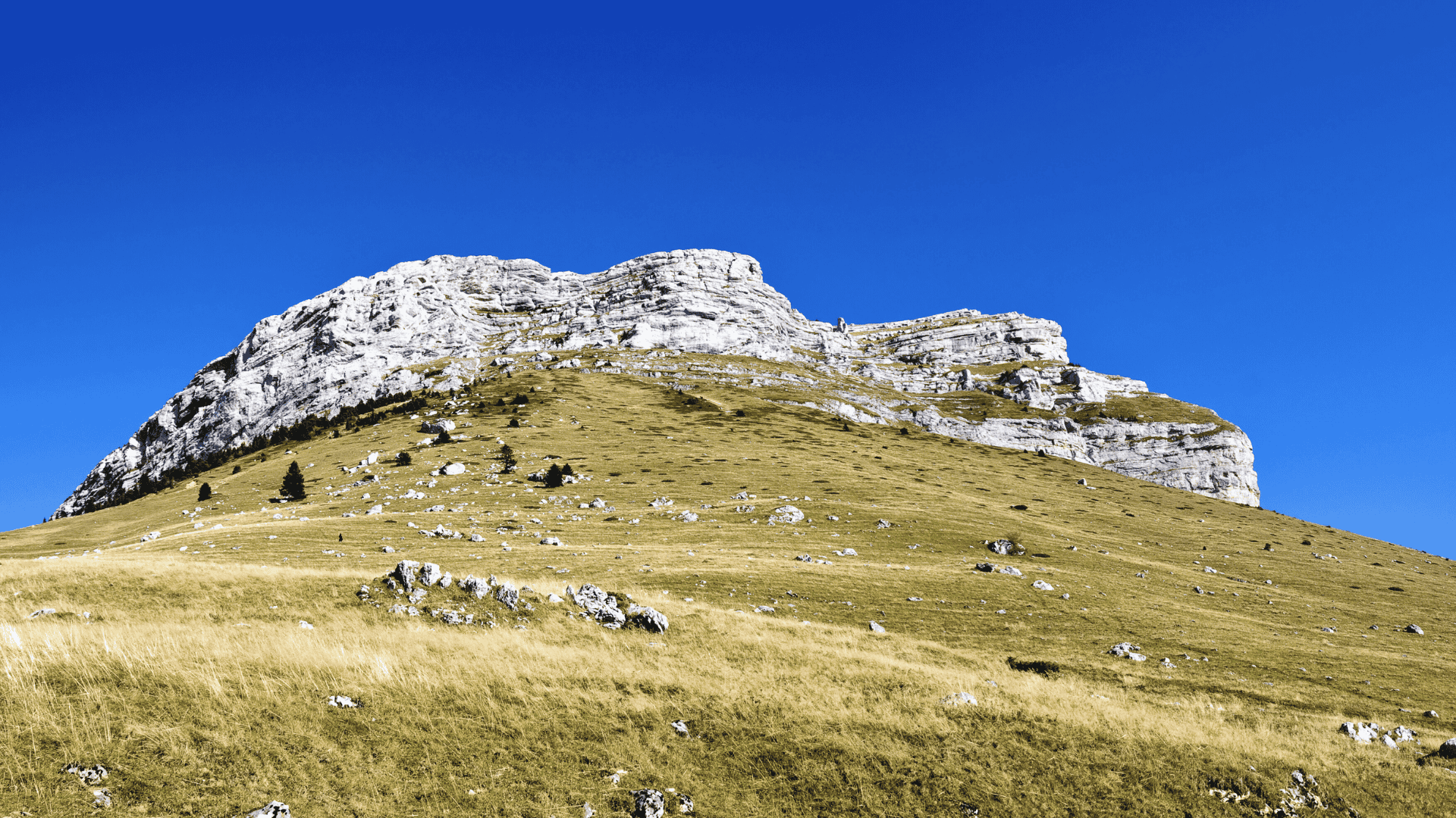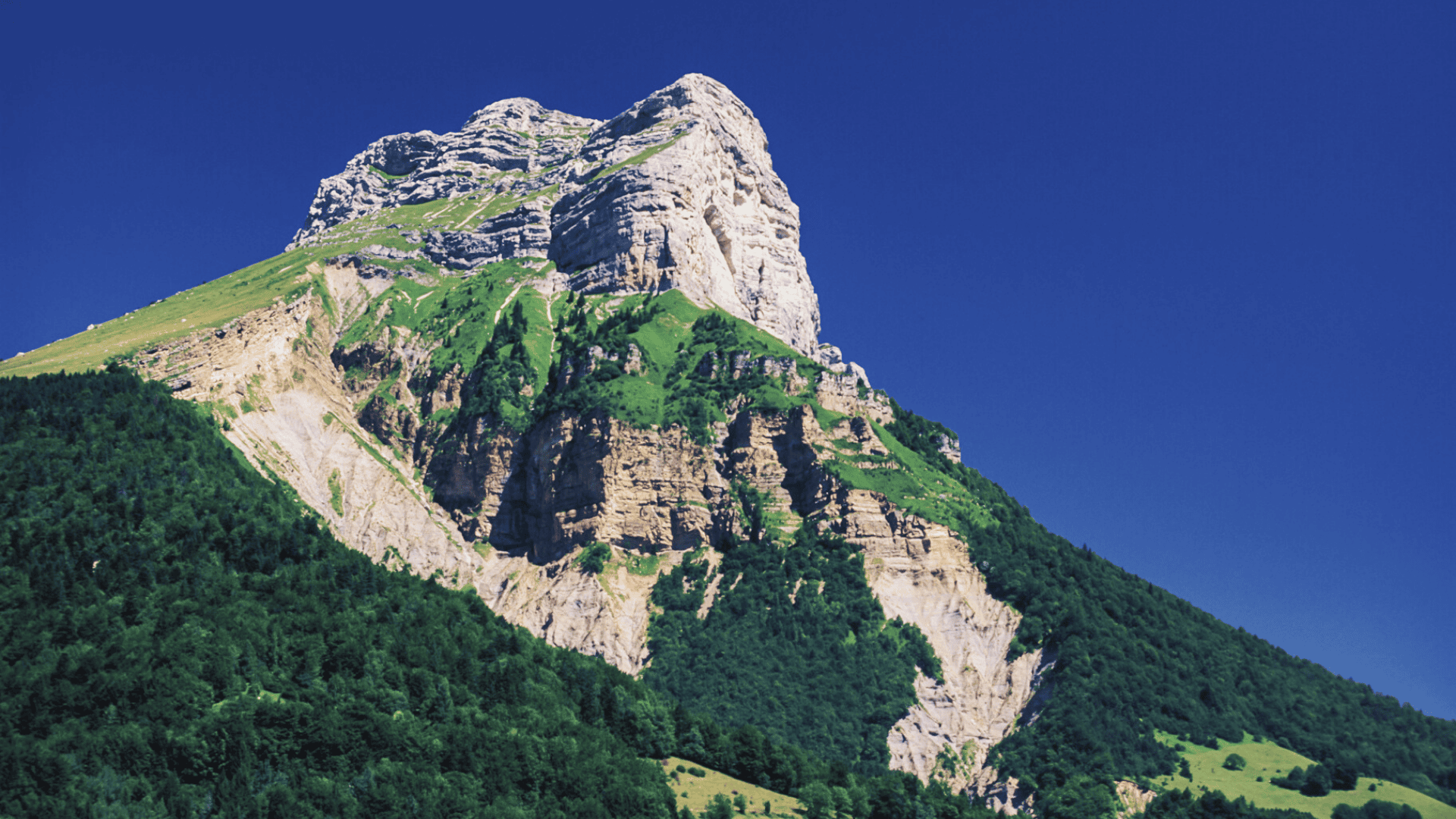 Der prächtige Dent de Crolles, zweiter Gipfel des Chartreuse-Massivs, 2.062 Meter über dem Meeresspiegel.