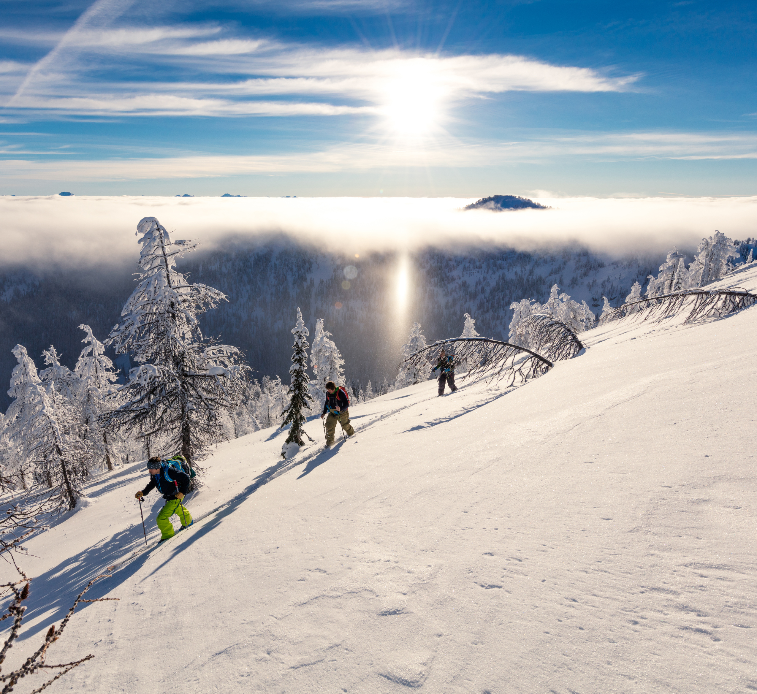 Kleine Tipps Muule : eine kompakte und atmungsaktive Daunenjacke, die Sie beim Aufstieg warm hält, ohne zu tropfen. Und um beim Abstieg keine erfrorenen Hände zu bekommen, denken Sie daran, Ihre Skihandschuhe mit einer guten Thermoschicht auszukleiden.
