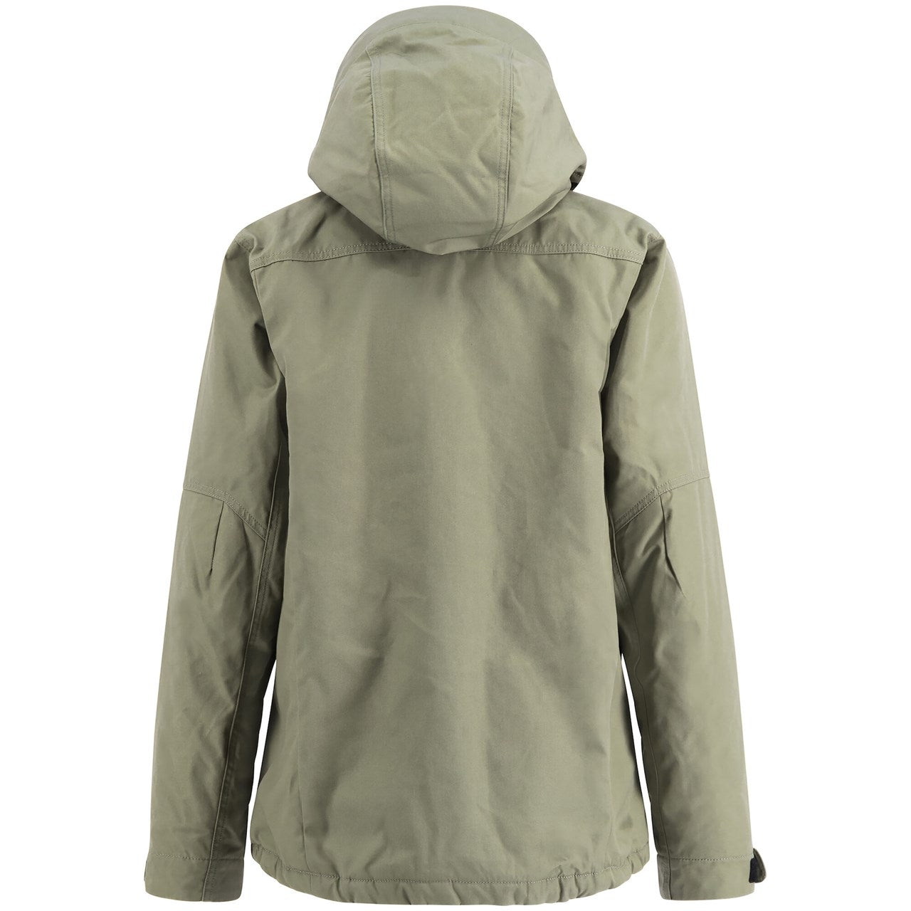 Das Futter ist aus Fleece , warm und angenehm zu tragen. Die Ärmel sind gesteppt, um die Weichheit zu bewahren, die großen Taschen und die Kapuze sind ebenfalls mit Fleece gefüttert, um überall warm zu bleiben. Der äußere Teil erhält eine Mischung aus recyceltem Polyester und Bio-Baumwolle mit gewachster Oberfläche, um schlechtem Wetter standzuhalten und eine hervorragende Haltbarkeit zu gewährleisten.