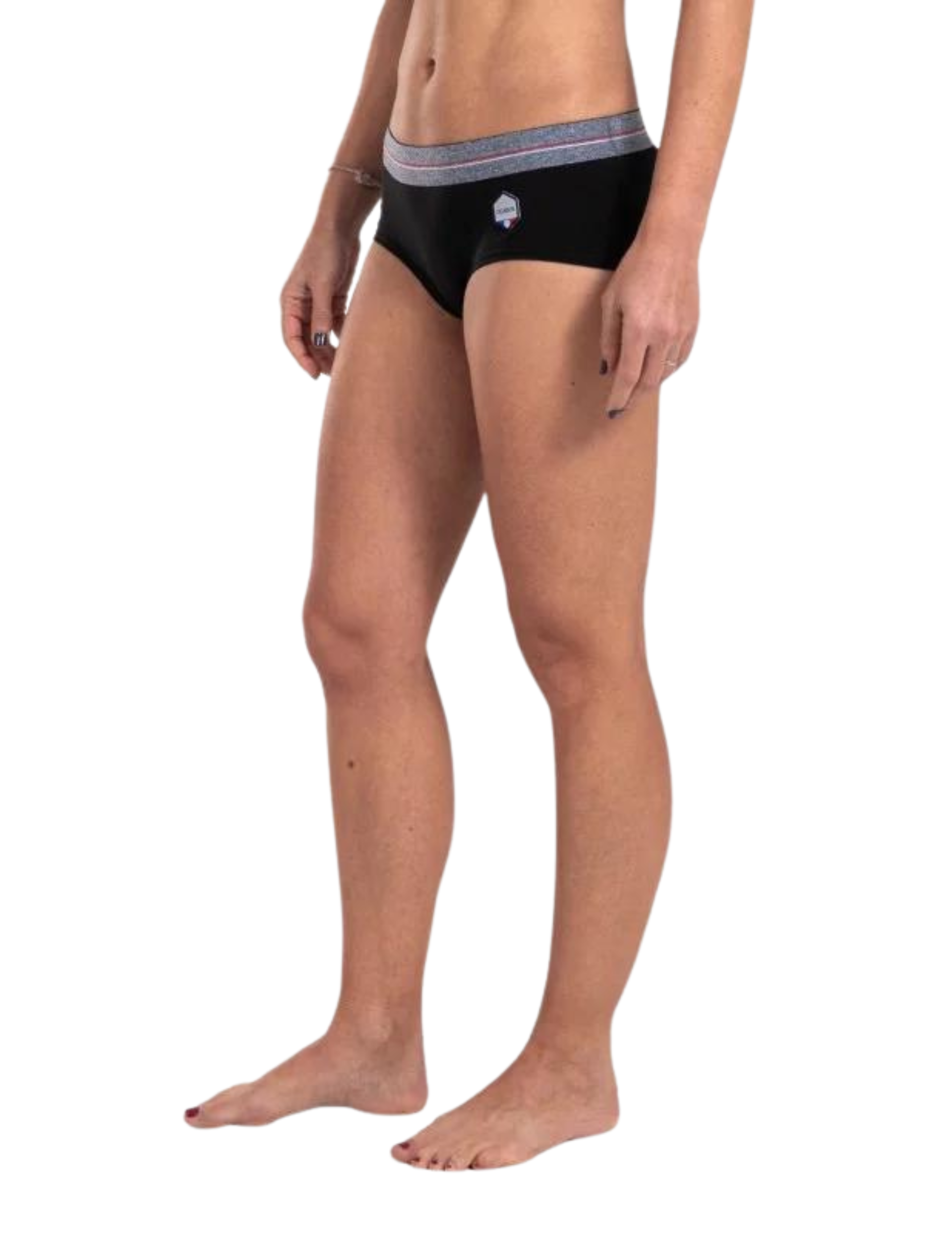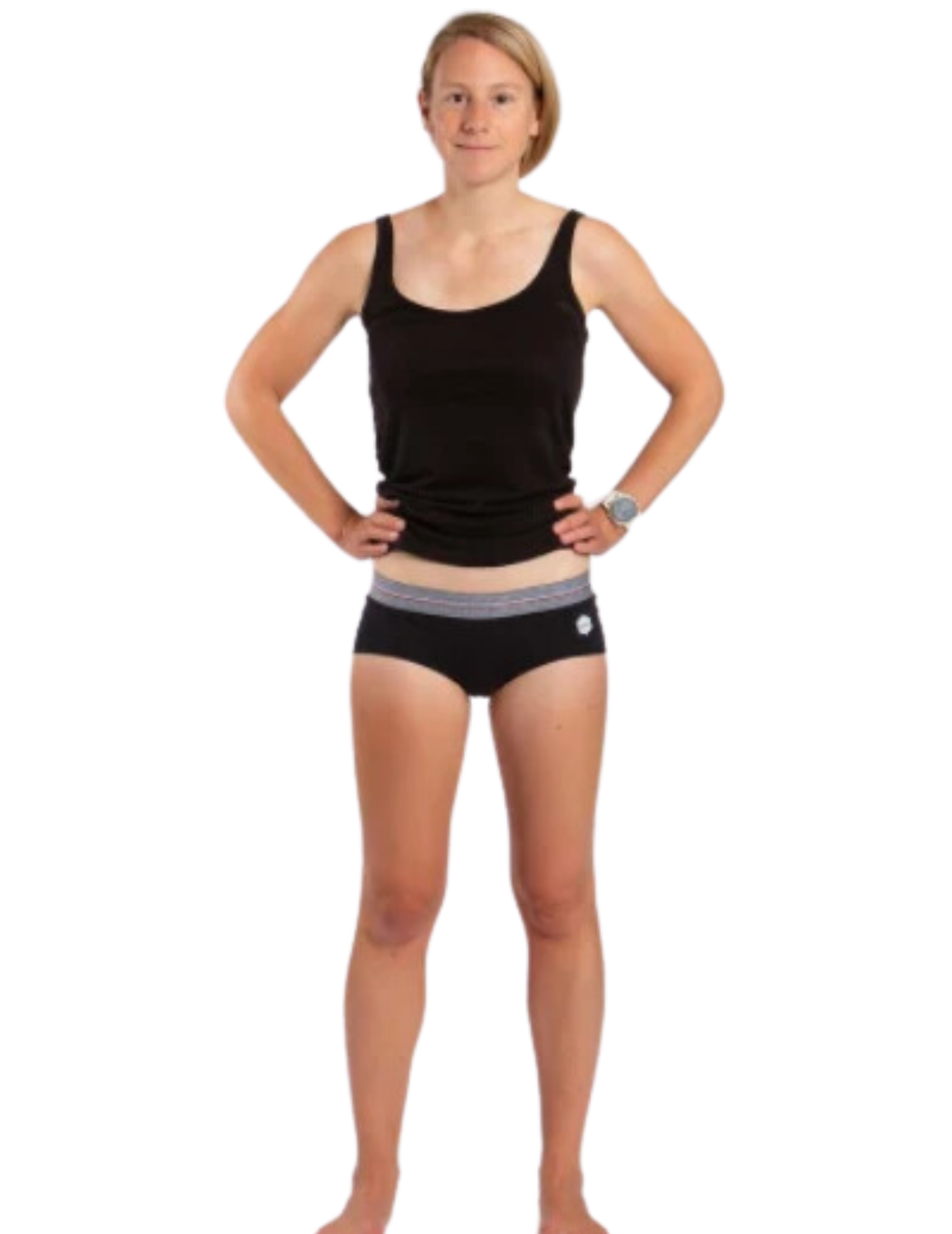 Elle est également appréciée en tant que couche unique pour des pratiques plus douces, comme le yoga ou le Pilates. Reconnue pour son confort exceptionnel et sa douceur, cette culotte séduit également par sa facilité d'entretien.