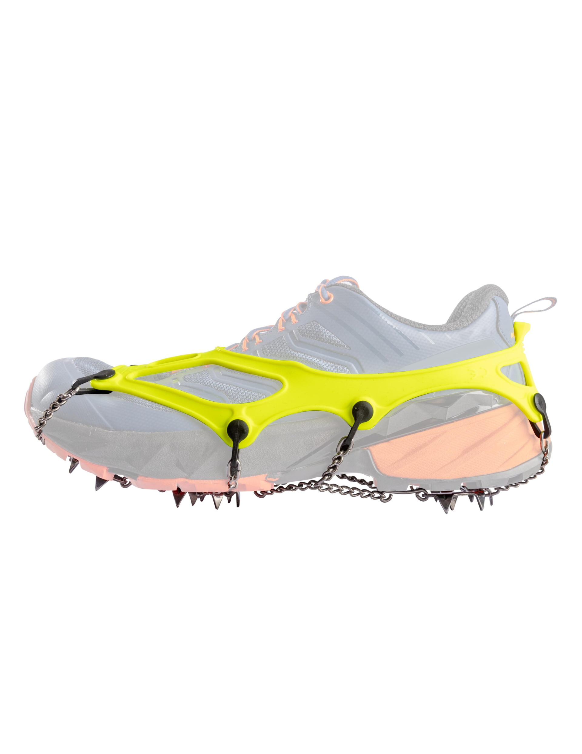 • Élastomère en silicone haute technologie, testé jusqu'à -60 °C, garantissant un ajustement rapide, confortable et un positionnement parfait des crampons légers.