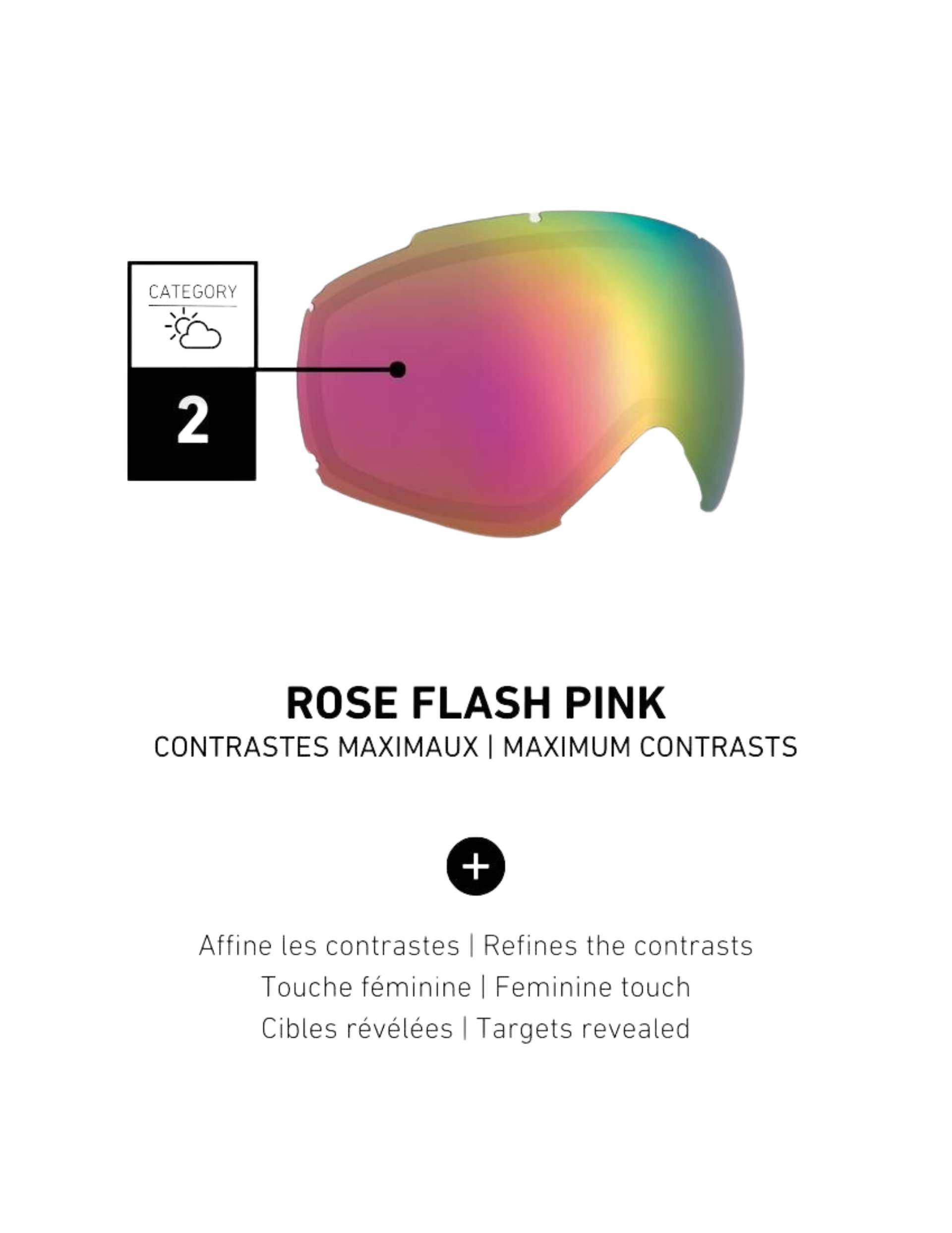 Affichant un excellent rapport qualité/prix, le masque de ski CÉBÉ Cloud est un modèle se distingue par son champ de vision particulièrement large. Il est ici proposé avec un écran de catégorie 2 Rose Flash Pink améliorant les contrastes, parfait pour les conditions de luminosité moyenne.