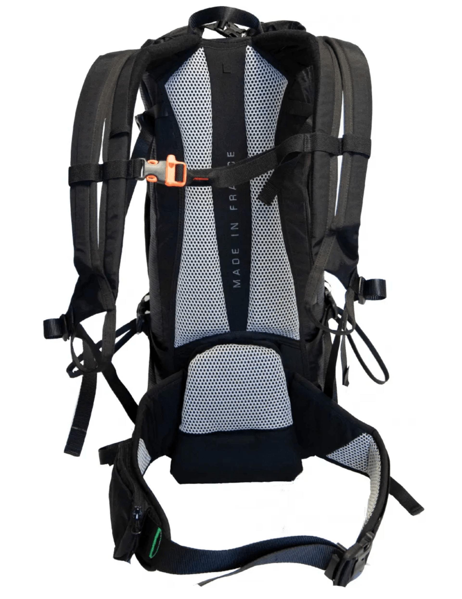 Mais hormis son aspect pratique indéniable, c'est un fois chargé que l'Omega 30 démontre toutes ses capacités. Ses bretelles double brins viennent répartir le poids du sac pour plus de confort et de liberté de mouvement. Le concept MOOV® est une ceinture ventrale qui combine mouvement de rotation et de translation verticale. Ce concept permet de maintenir la position initiale de la ceinture sur les hanches dans toutes les situations (dévers, montée, descente, escalade) et donc de libérer en permanence les épaules pour un confort de portage exceptionnel.